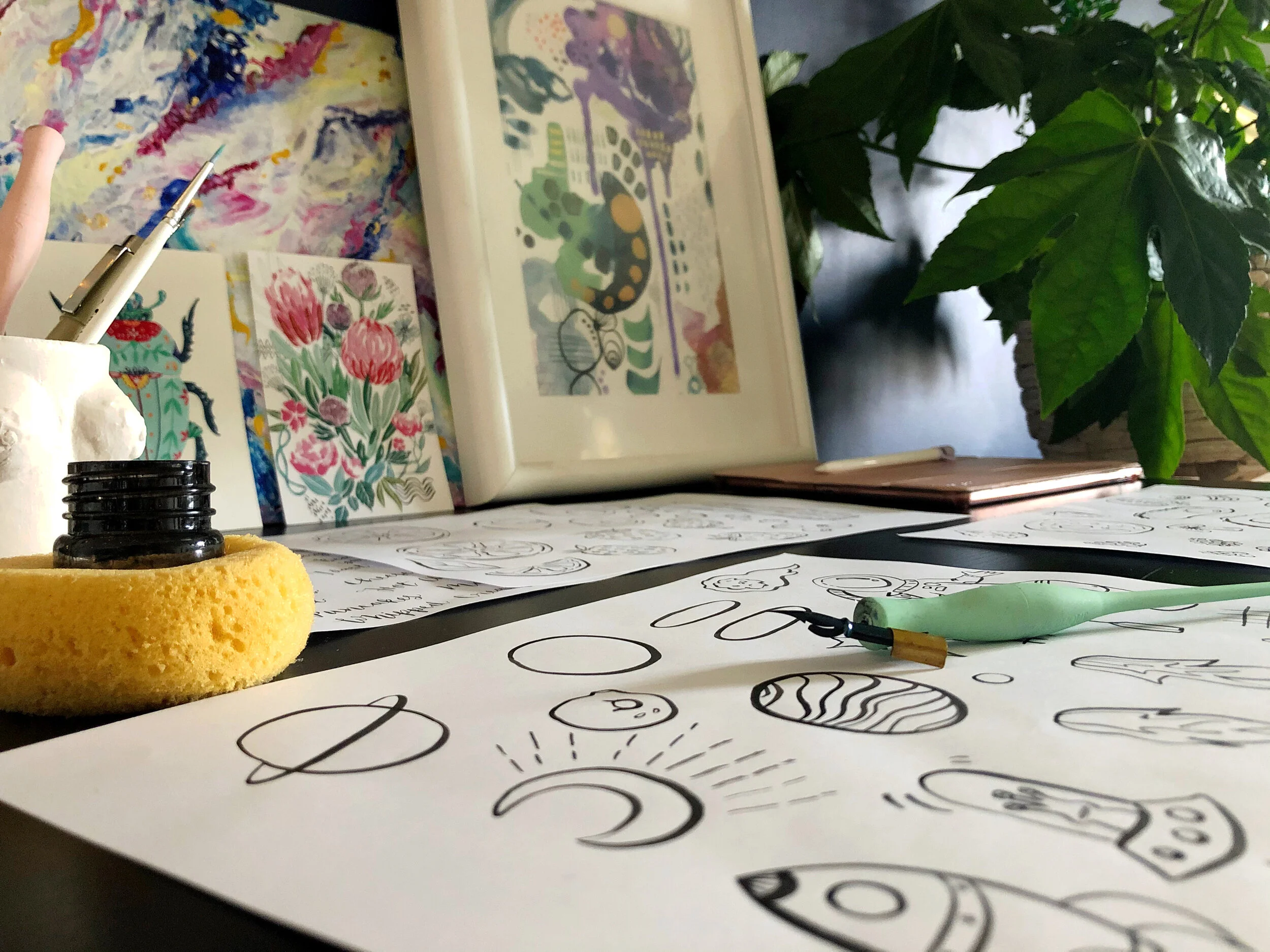 I like to combine expressive line work and unexpected colour palettes to create joy filled art. My personal interests in exploring femininity and human nature are at the heart of Envy Row. My primary goal is to help other people craft happy lives by drawing on both my professional Occupational Therapy background and my passion for illustration.
